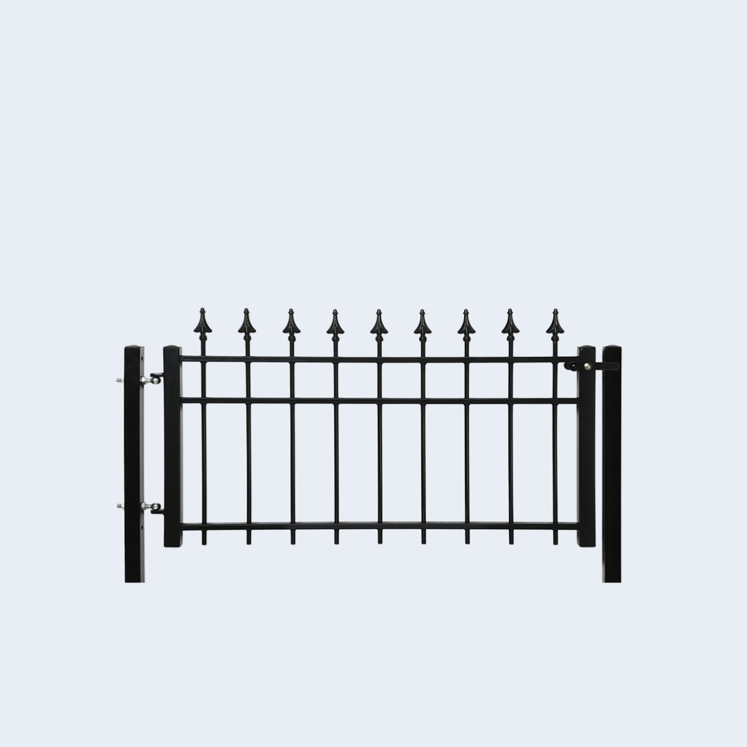 De set looppoort bestaat uit; bevestigingsmateriaal slot opvangslot 2 palen 4*4 cm. Bevestigingsmateriaal om hekwerk aan de palen van de poort te bevestigen.