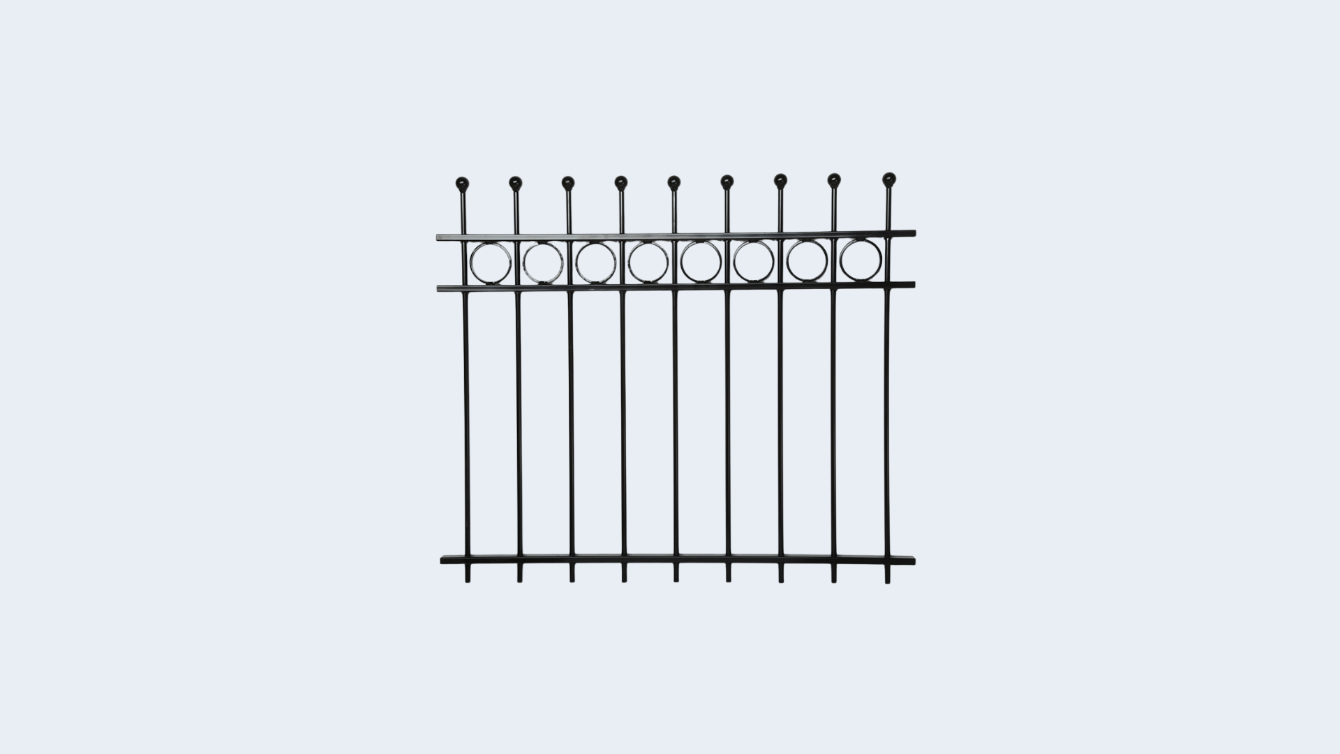 Spijlen rond 12 mm en een staaldikte van 1,5 mm De afstand tussen de spijlen is 100 mm Liggers (horizontale kokers) 30*15*1,5 mm